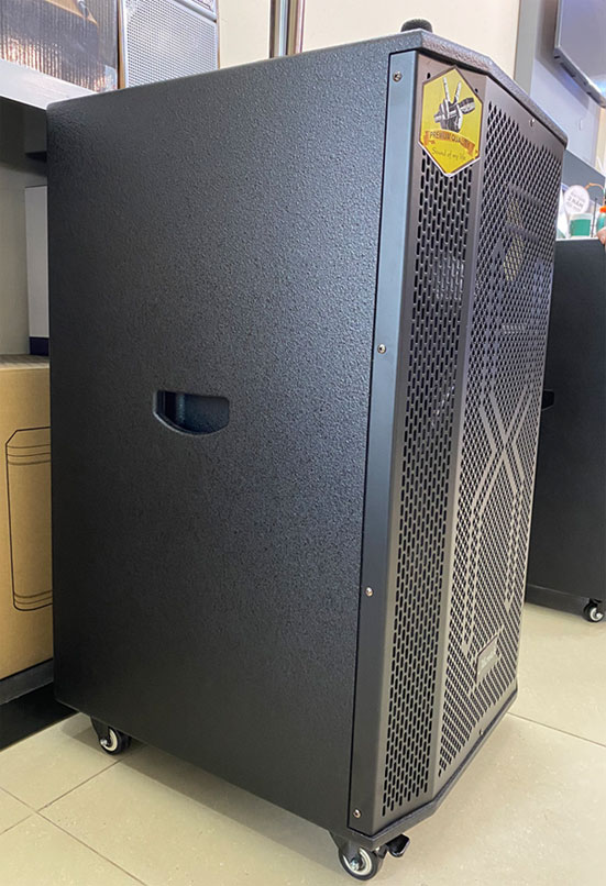 Phần loa bass có được làm nổi bật bằng tông màu vàng sáng chói. Bảng điều khiển được đặt phía mặt trên đỉnh của loa. Mặt trên đỉnh của loa còn thiết kế 2 hộc để cắm mic rất tiện lợi