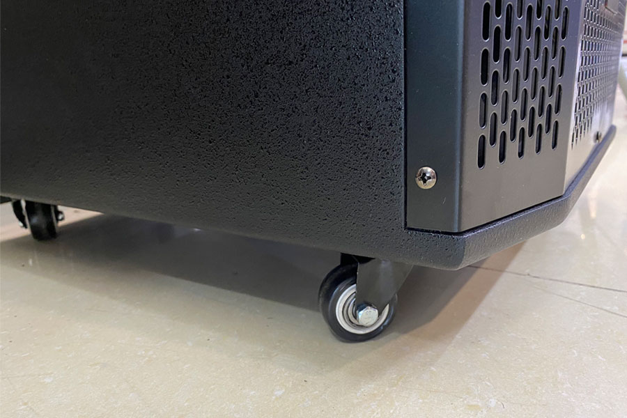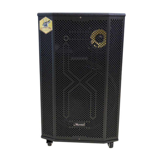 Logo Microteck được gắn phần giữa của loa. Tích hợp 4 bánh xe di động giúp người dùng di chuyển mọi nơi, bánh xe có chế độ khóa bánh.