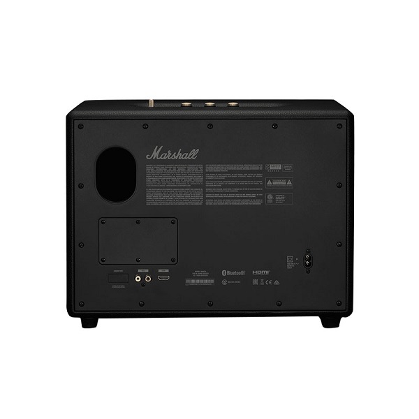 Mặt sau của loa được thiết kế rất tinh tế bao gổm: cổng Bass reflex, cổng RCA, có cổng HDMI và cổng nguồn.